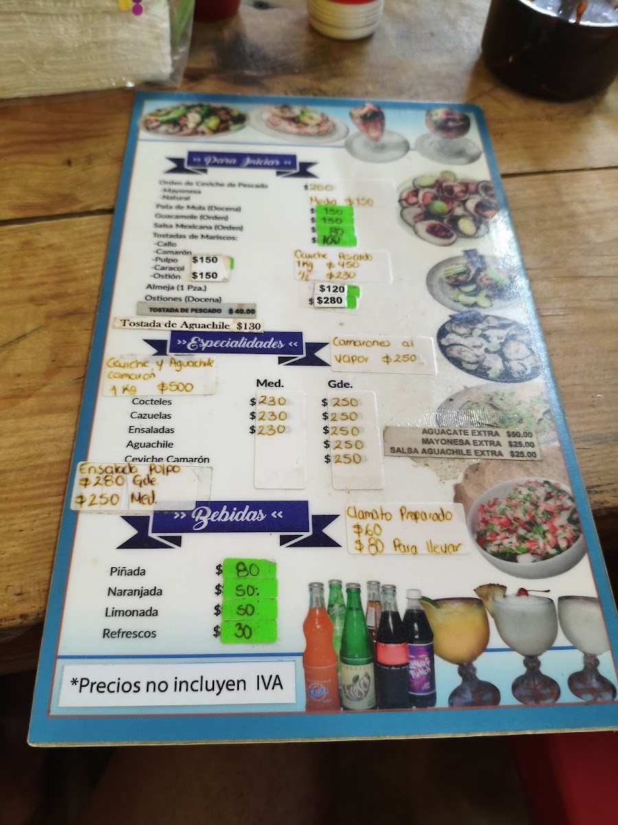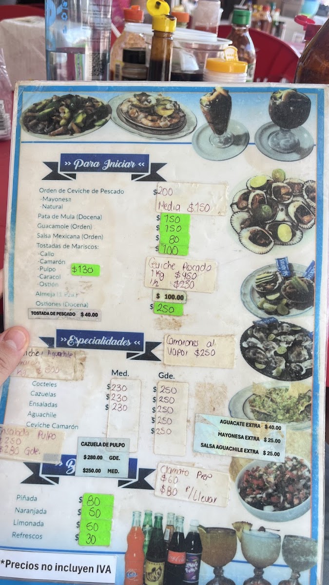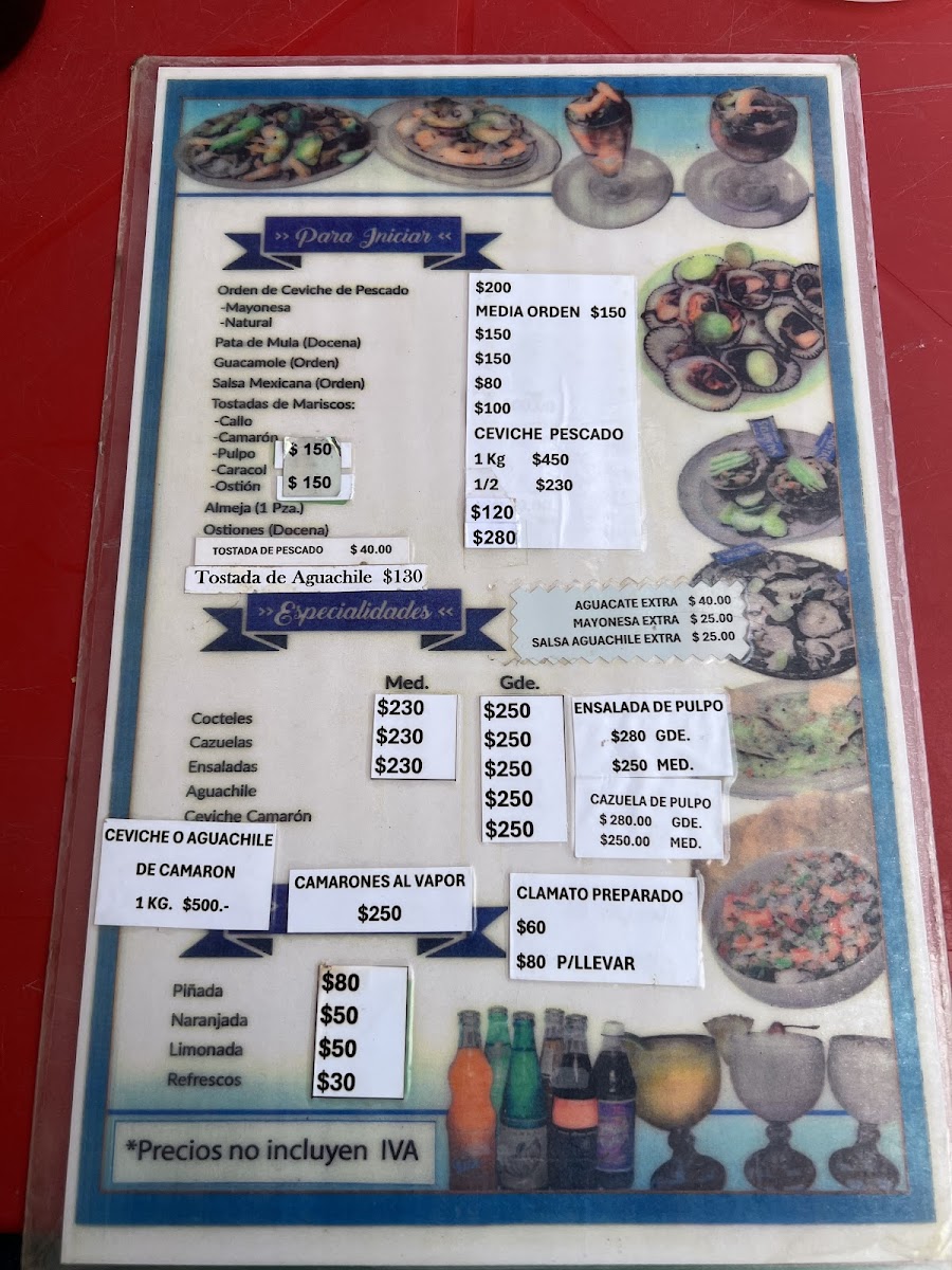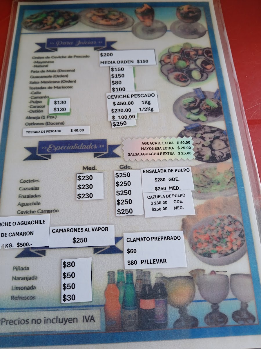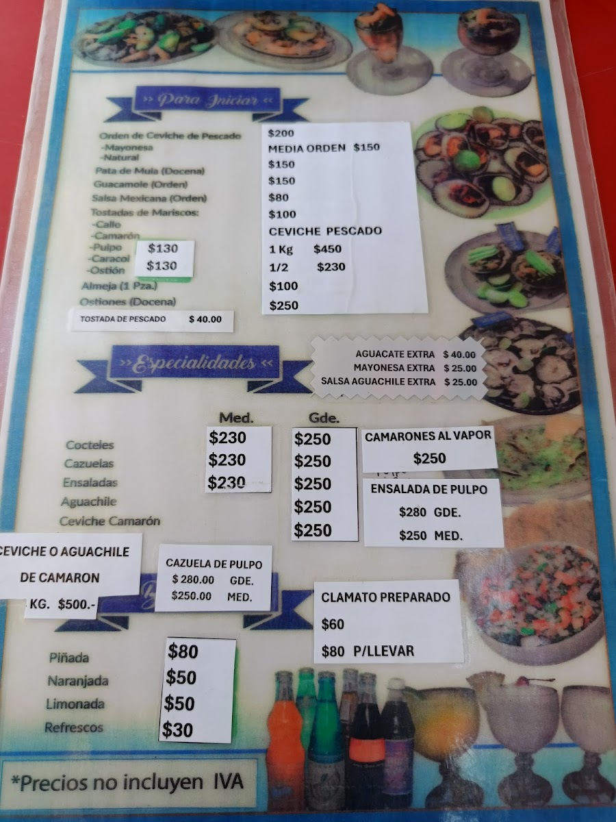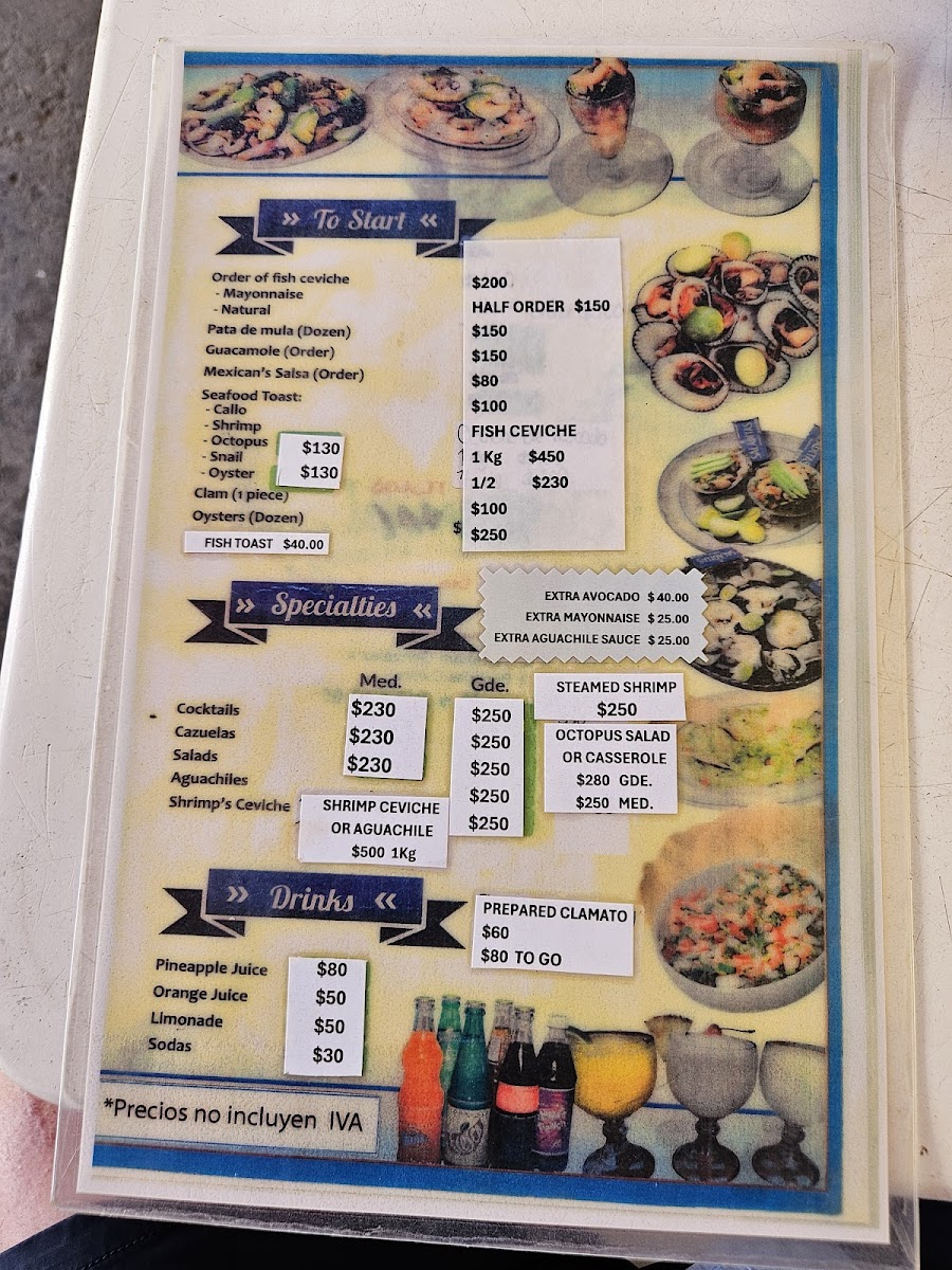 The menu features a wide array of seafood options, catering to diverse tastes. Tacos de Pescado and Camarones al Mojo de Ajo stand out as must-try dishes, showcasing perfectly cooked fish and shrimp in flavorful sauces. The Ceviche, prepared with fresh fish and a tangy citrus marinade, is another highlight, offering a burst of refreshing flavors. For those looking for something heartier, the Mariscada (a mixed seafood platter) is a favorite choice, delivering a satisfying variety of shellfish and fish, served with sides that complement the rich flavors of the seafood.